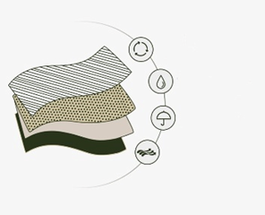 • - Capa exterior: tela transpirable con refuerzo en la zona central